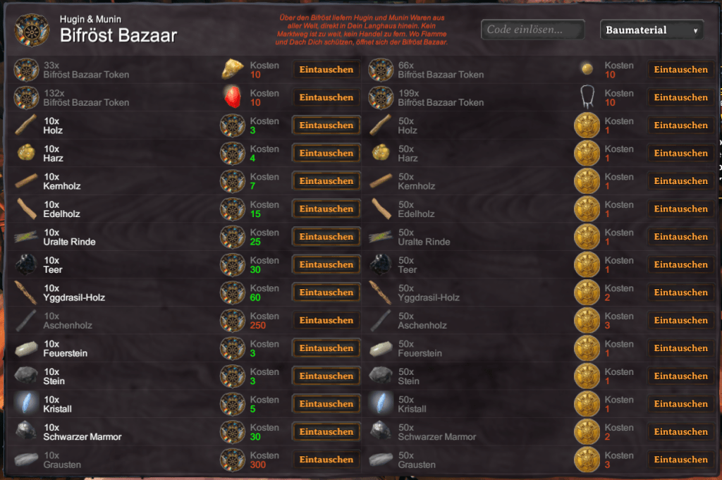 Verkaufe etwa den Loot aus Grabkammern oder alten Mist aus verstaubten Kisten im Keller und erwerbe die nötigen Bifröst Bazaar Tokens. Mit den passenden Tokens lassen sich Baumaterial, Erze und noch mehr Erwerben.
