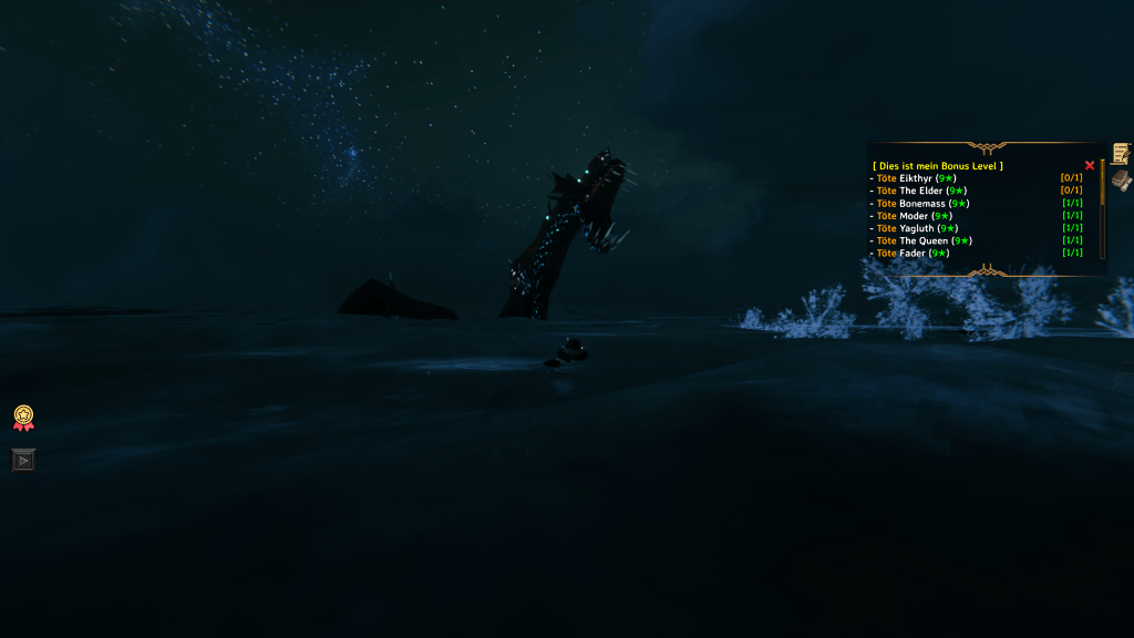 Ragnar wird Euch dort jeweils empfangen und Euch unter dem Einsatz Göttlicher Tinktur Herausforderungen stellen. Wichtig dabei, wer eine Quest angenommen hat, muss diese auch beenden! Wenn ein anderer Spieler diese Kreatur tötet, als man selbst, muss man die Quest abbrechen und neu annehmen, sonst wird man den Erfolg nicht bekommen.